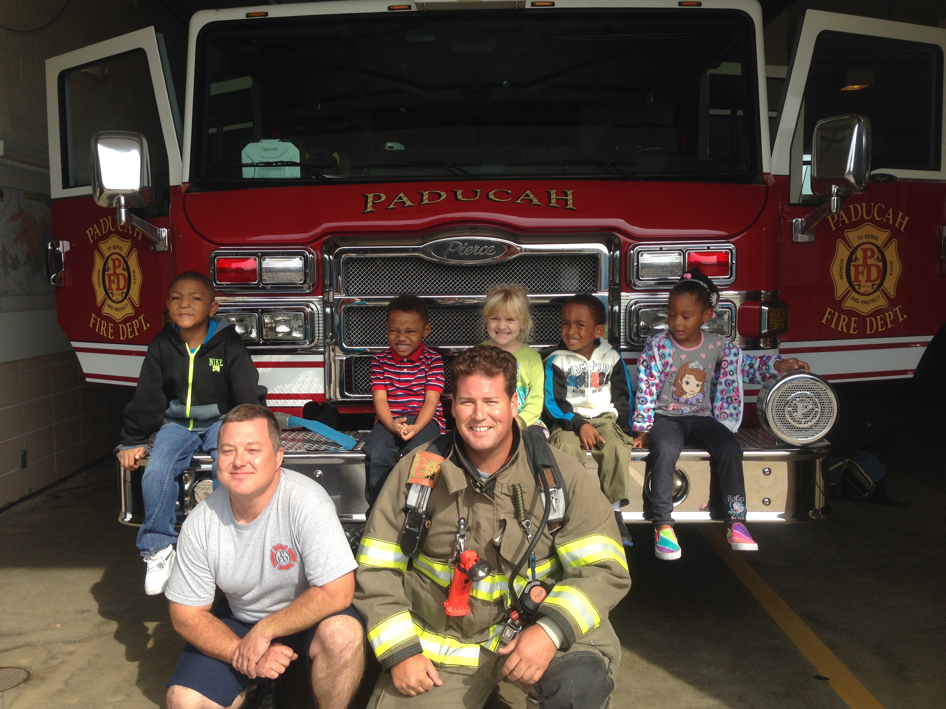 Well it's that time of the year again that the schools come to visit their favorite public safety persons, the fire fighters and the fire stations. With fire prevention month just around the corner, some schools are getting a jump start on the fire station tours. Paducah's Tot School visited the fire fighters at Station 1 today. Cpt. Brian Waid, Lt. Nathan Torian, and Pvt David Johnson gave the kiddos a fun-filled tour of the station, the fire trucks, and all the fun toys that go with it while educating the kids about fire prevention. Sometimes even Sparky shows up! We thank Paducah Tot School for being our first school of the year.